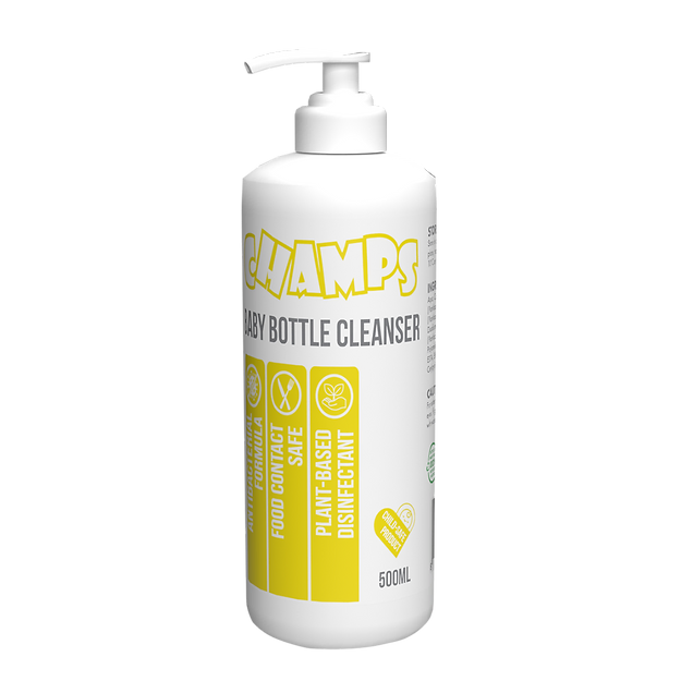 Nước rửa bình sữa Champs Baby là chất khử trùng có nguồn gốc thực vật, bao gồm 100% thành phần đạt chuẩn thực phẩm. Nó loại bỏ hiệu quả các cặn bẩn cứng đầu và làm sạch không chỉ bình sữa mà còn cả núm vú, đồ chơi, phụ kiện và thậm chí cả trái cây và rau quả.