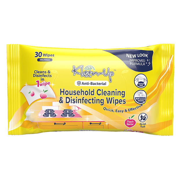Khăn lau khử trùng và vệ sinh gia dụng Kleen-Up cung cấp một cách thuận tiện để vệ sinh và khử trùng bề mặt gia dụng của bạn một cách nhanh chóng mà không cần xà phòng và nước. Tuyệt vời để sử dụng trên tất cả các bề mặt cứng và không xốp trong nhà, trong bếp, phòng tắm hoặc bất cứ nơi nào vi khuẩn có thể tích tụ. Mỗi khăn lau ẩm khử trùng đều mềm, dày và chắc để loại bỏ bụi bẩn và dầu mỡ cứng đầu khỏi bề mặt. Được tăng cường với công thức kháng khuẩn, chúng đã được thử nghiệm lâm sàng để tiêu diệt vi khuẩn trong khi vẫn giữ cho tất cả các bề mặt sạch sẽ hợp vệ sinh.