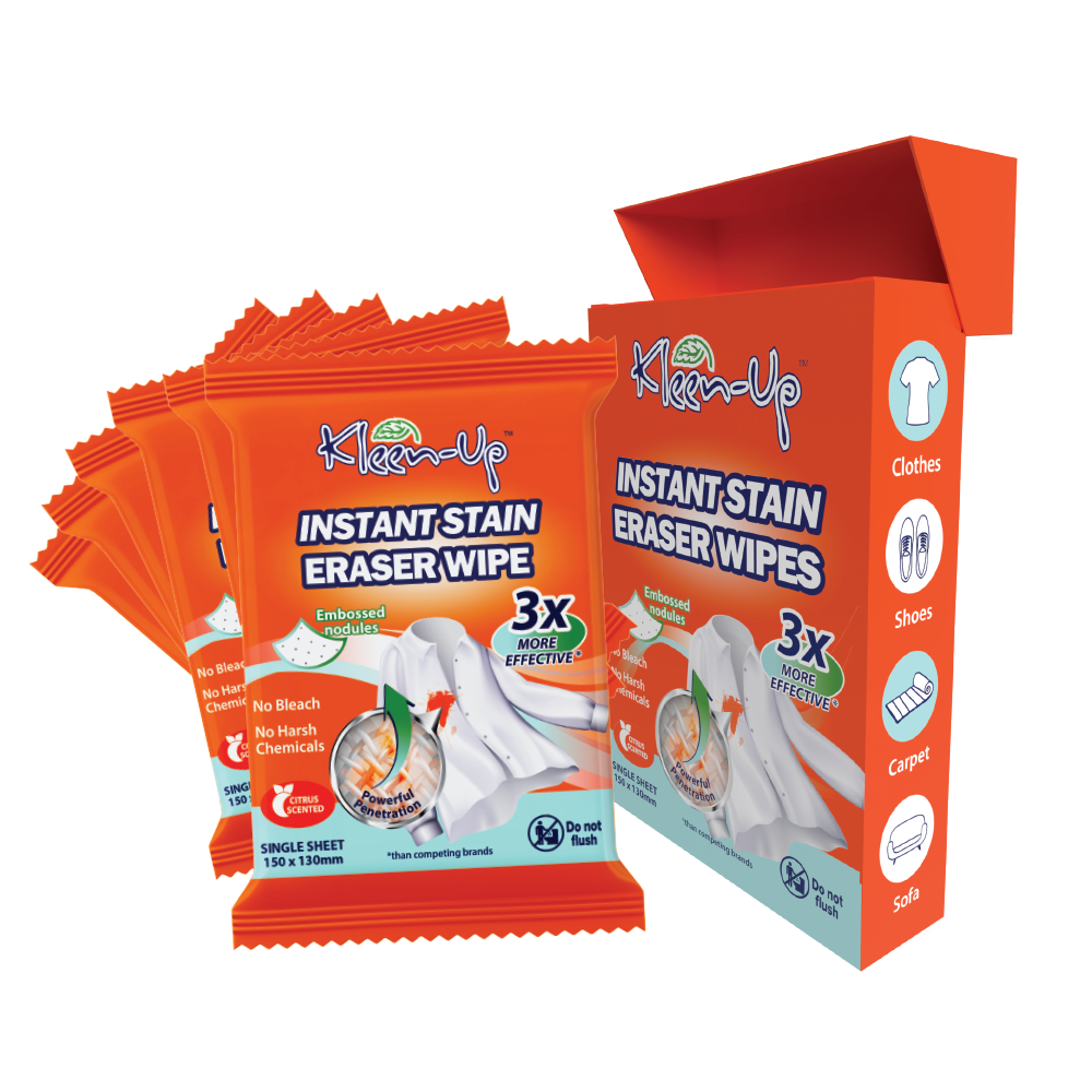 Kleen-Up Instant Stain Eraser lau sạch vết đổ và vết bắn trong vài giây. Công thức mạnh mẽ, an toàn cho vải của chúng tôi đánh bay vết bẩn sâu bên trong, giúp quần áo trông tươi mới với mùi hương sạch sẽ. Được đóng gói riêng để tiện mang theo khi di chuyển, những vật cứu cánh này có thể để ở bất cứ đâu — ví, xe hơi, bàn làm việc — sẵn sàng giải quyết mọi vết bẩn, bất cứ lúc nào!
