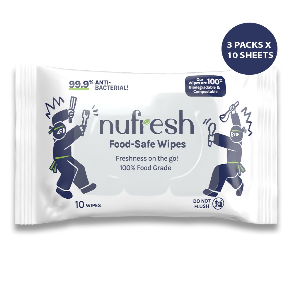 Khăn lau an toàn thực phẩm Nufresh được thiết kế để vệ sinh an toàn và hiệu quả cho dao kéo và đồ ăn của bạn. Khăn lau của chúng tôi được pha chế với các thành phần có nguồn gốc từ thực vật, không chứa hóa chất độc hại và đủ nhẹ nhàng cho cả làn da mỏng manh nhất. Những chiếc khăn lau này có khả năng khử trùng vượt trội, loại bỏ 99,9% vi khuẩn và vi trùng trong khi vẫn nhẹ nhàng với tay và bề mặt, tốt hơn nữa là an toàn khi tiếp xúc với thực phẩm!