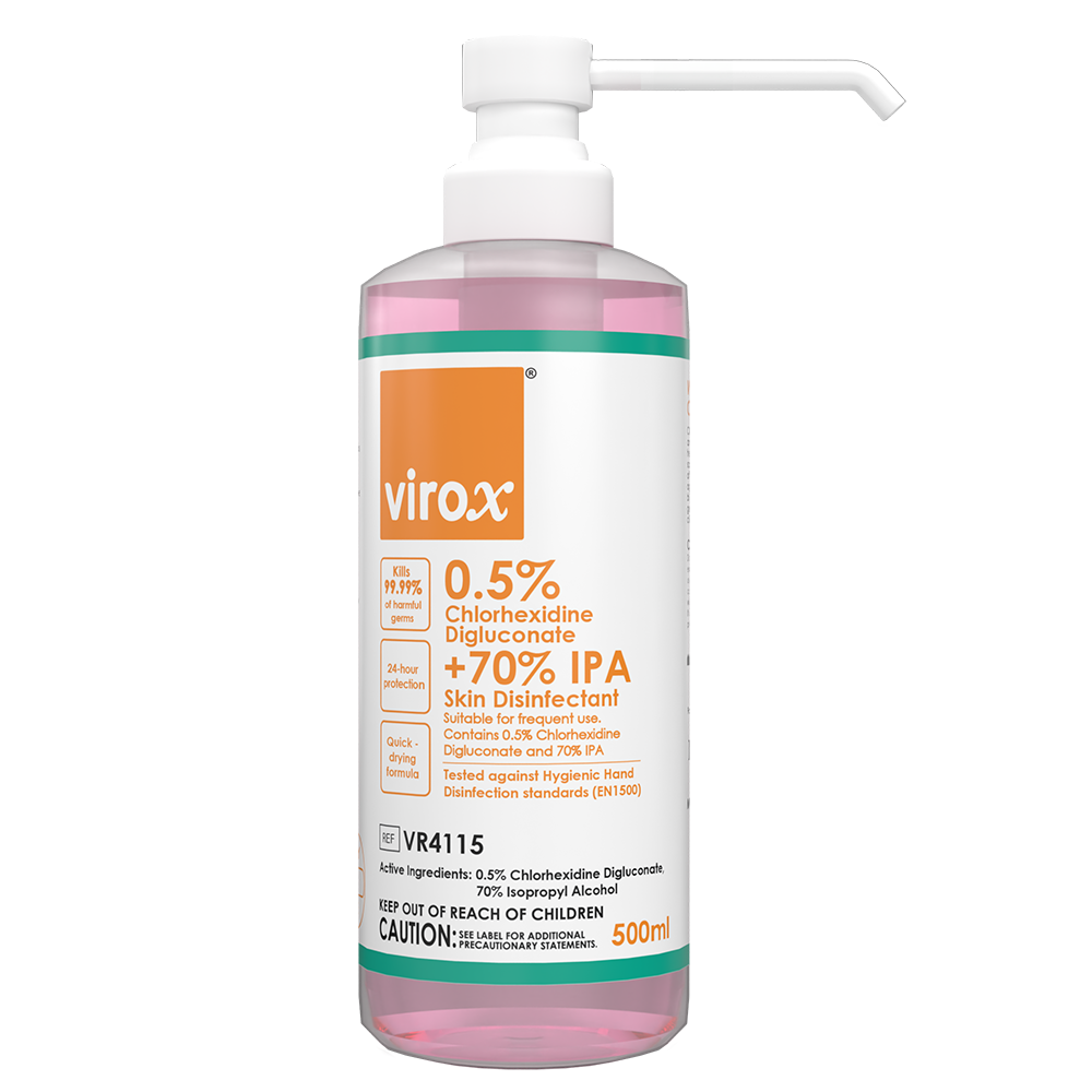 Dung dịch khử trùng da Chlorhexidine Digluconate 0,5% + IPA 70% có tác dụng bảo vệ trong 24 giờ, loại bỏ hiệu quả 99,99% vi khuẩn có hại. Công thức khô nhanh lý tưởng để sử dụng thường xuyên và vệ sinh tối ưu.