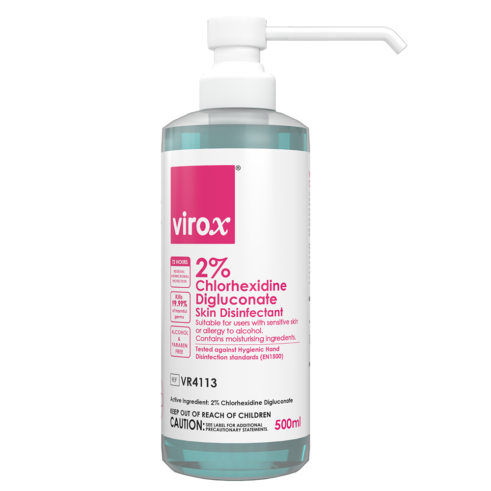 Chlorhexidine được CDC, WHO và AHRQ chứng nhận có tác dụng giảm và kiểm soát các bệnh nhiễm trùng liên quan đến chăm sóc sức khỏe. Nó hiệu quả hơn xà phòng và nước trong việc loại bỏ vi khuẩn và có khả năng sát trùng da vượt trội so với các tác nhân như povidone-iodine. Chlorhexidine bám vào da, cung cấp khả năng bảo vệ diệt khuẩn lên đến 72 giờ và thường được sử dụng trong bồn rửa lâm sàng và phòng tắm bệnh nhân.